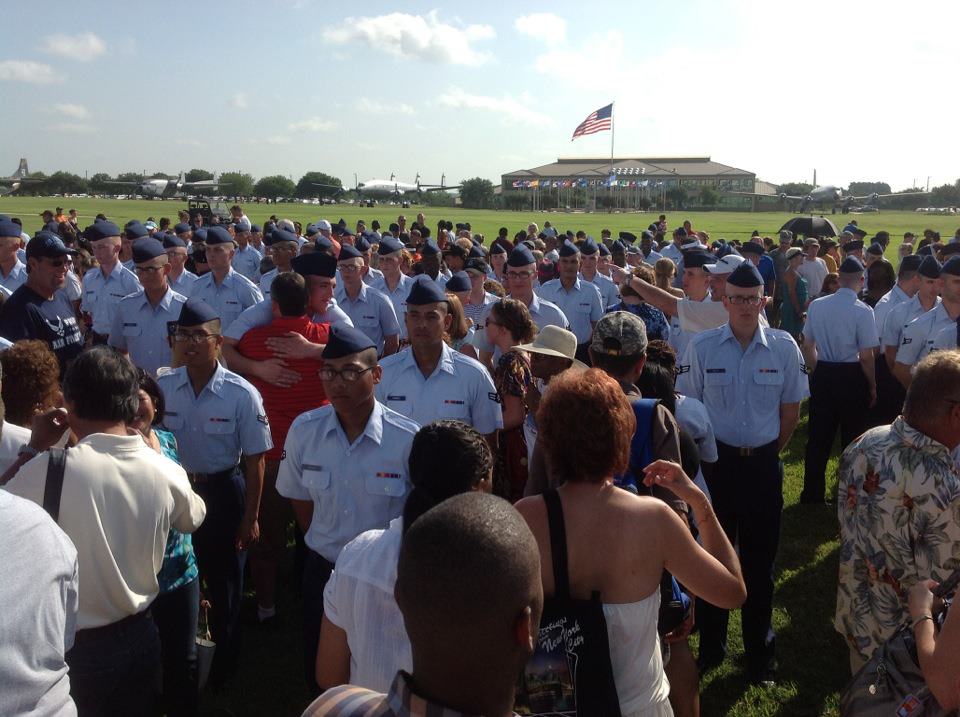 August 1st, the day I’d been waiting for, was finally here! It was time to jump on a plane! Traveling was easy and pain free until we landed in San Antonio and there was a bomb threat in the terminal. They kept us on the tarmac for 1.5 hours while they secured the airport. Talk about a buzz kill. All this build up to finally be there and you’re stuck on a plane with 100 sweaty people with no estimate of how long you’d be trapped. One up side to sitting there for that period of time Scott got a little free time and was able to call so I was able to tell him we were almost safely there. It was an amazing feeling to know I was only miles away from him verses the hundreds of miles that had been separating us. He said goodbye and we were finally able to exit about 10 minutes after. Thank goodness that trial was over!