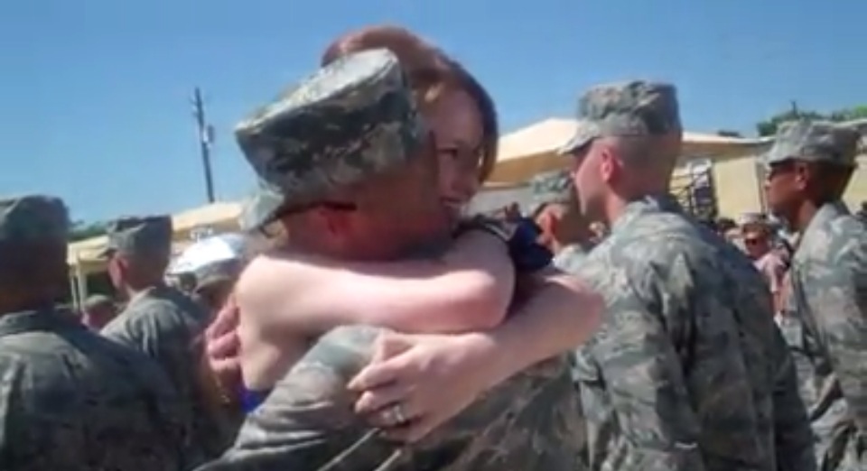 I was sooo excited to find him! I was pretty sure I knew where he was but I wasn’t certain from the back side. If you watch the video closely you can see me check his name tape before jumping on him, just to make sure it said “Dearborn”. I didn’t want to jump on a stranger. [haha.] This is by far one of the top 3 moments of my life!!! It was perfect and I’m so glad that my mom video taped it because it’s something we will enjoy remembering and watching for the rest of our lives!