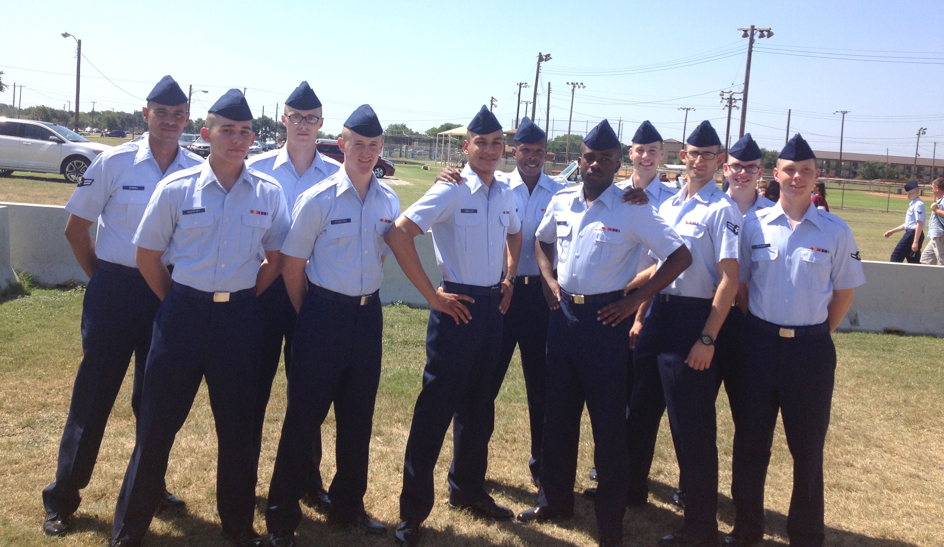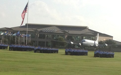 Friday morning we all had to get up early to catch the shuttle to the graduation grounds. Luckily our seats were shaded because it was once again really hot and sunny. If you ever have the chance to see one of these graduations DO IT! It’s wonderful and makes you feel so patriotic! Scott’s flight is the grouping right below the American Flag.